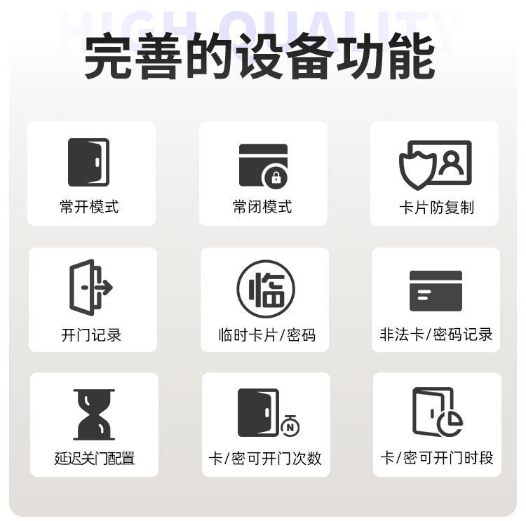 新疆这款智能门锁提供室内门锁和防盗门锁两种选择,其中室内门锁尺寸为 2806521mm,适配 5050 锁体;防盗门锁尺寸为 3657021mm,适配 6068 锁体,可满足不同场景的安装需求。它采用铝合金一体成型搭配钢化玻璃面板打造,兼具坚固耐用的品质与简洁美观的视觉效果。门锁支持蓝牙无线通讯,解锁方式丰富多样,密码、卡片、蓝牙、钥匙四种方式随心选择,满足不同使用习惯与应急需求。其工作温度范围为 - 20~70℃,能适应多数地区的气候条件,采用碱性电池供电,安装更换便捷,是兼具安全性与实用性的门锁选择。